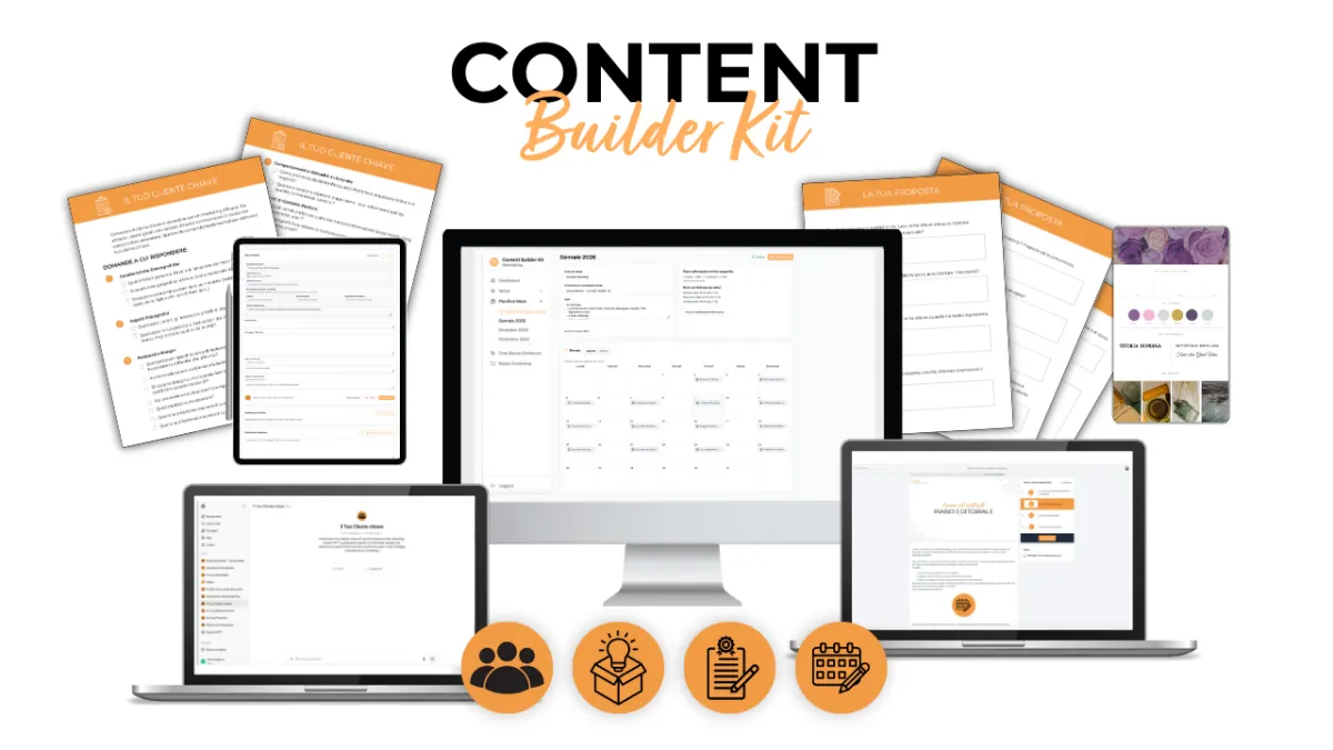 Il Content Builder Kit ti guida, con video tutorial e assistenti AI, a impostare un brand che ti distingue nella comunicazione verbale e visiva.